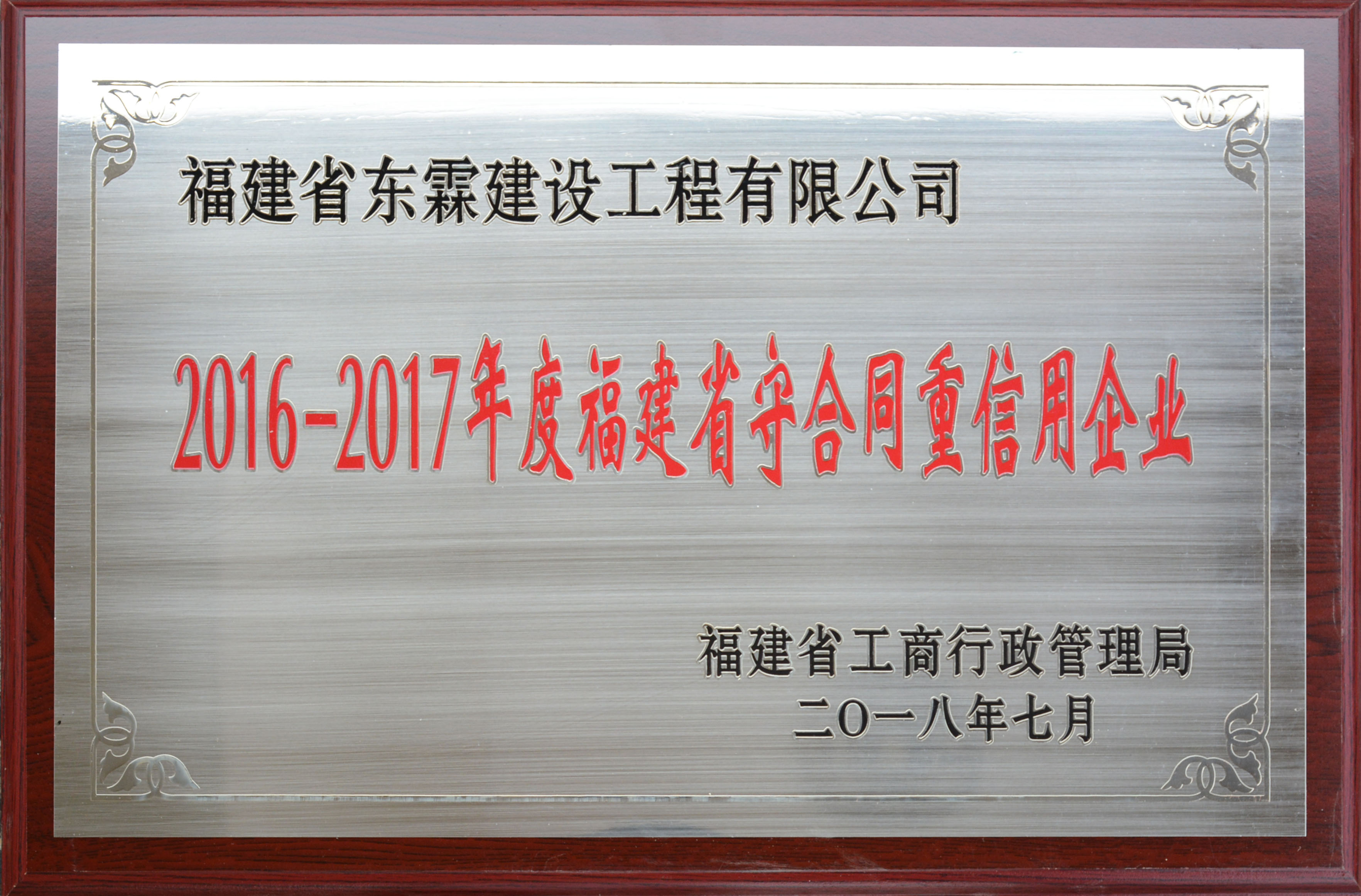 2016-2017年度福建省守合同重信用企业