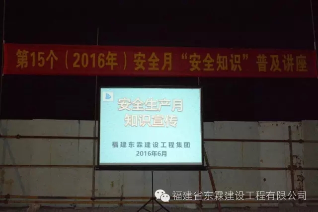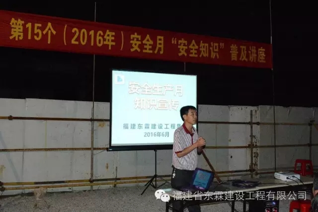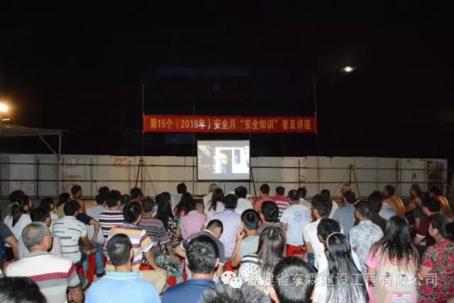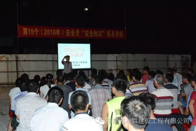 2016年6月,是全国第15个安全生产月。福建东霖建设工程集团于2016年6月21日下午在中国海峡国际五金机电大市场二期工程项目部举办“安全生产月”安全知识普及宣传活动,共计187人参加了本次宣传活动。