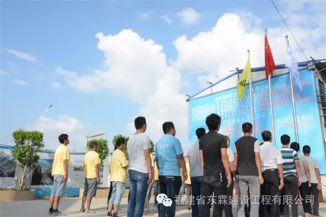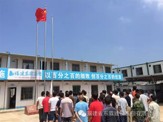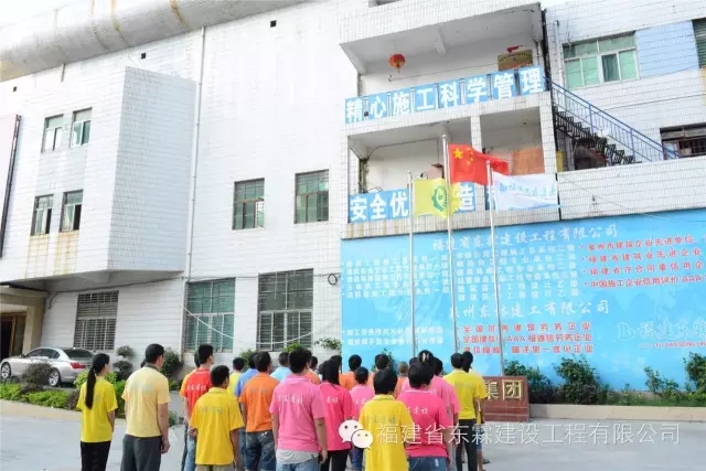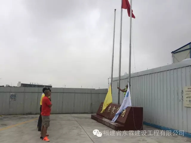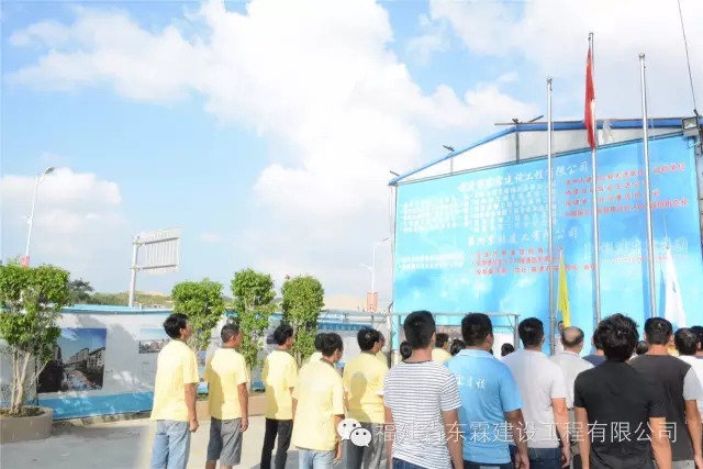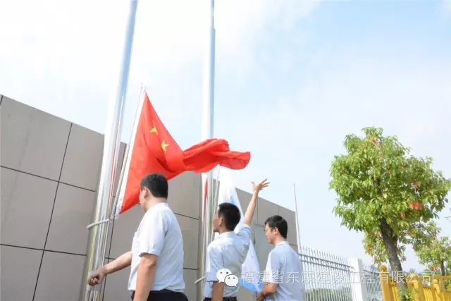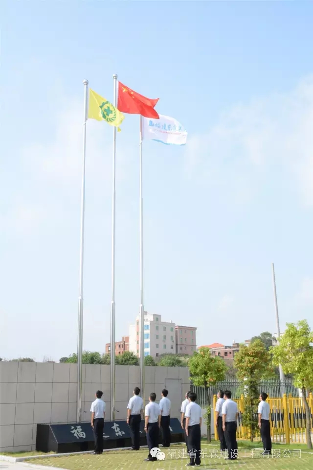 秋风猎国旗,晨曦迎华诞。又是一年金秋好时节,繁花似锦,欢歌如潮。2016年10月1日,福建东霖建设工程集团董事会林振聪董事长、经理室陈贤玻总经理、洪伟堂副总经理携各职能部门员工代表近70人在东霖集团建筑工业化产业基地隆重举行庄严的升旗仪式,庆祝中华人民共和国成立67周年。