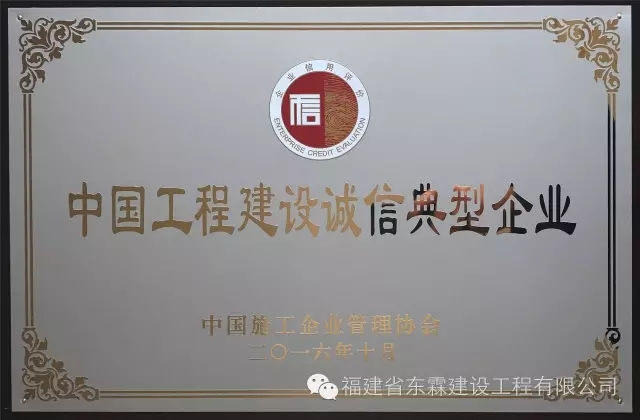 中国施工企业管理协会信用评价工作委员会研究决定,在会议上对全国157家荣获2016年度“工程建设诚信典型企业” 进行了表彰(福建省7家企业获此殊荣)。