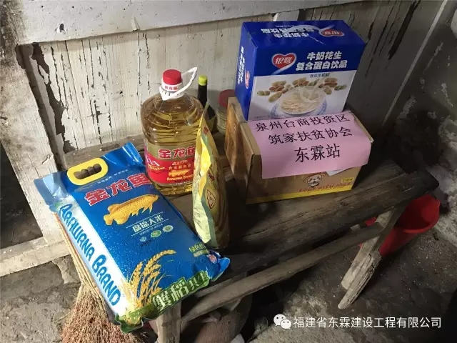 2016年12月30日上午,福建东霖建设工程集团与泉州台商投资区筑家扶贫协会,带上慰问物资(油、米、燕麦片、小面包、牛奶),走进泉州台商投资区洛阳镇后埔村慰问了4户孤寡老人、贫困户!