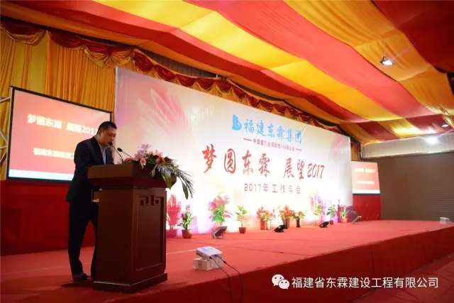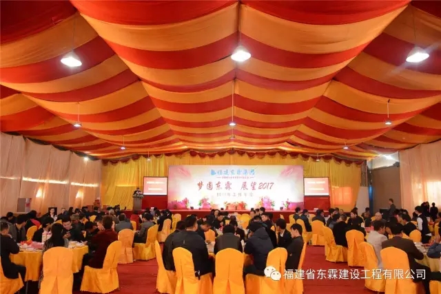 江南游戏于2017年2月6日(农历正月初十)11:00在福建东霖建设工程工程集团企业总部大楼后方会场隆重举行以”梦圆东霖、展望2017“为主题的工作年会。