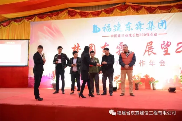 来自集团公司下属控股子公司主要负责人、及各个分公司、各职能部门、各项目部共计近300人参加了工作年会。工作年会还对福建东霖建设工程集团2016年度优秀部门、优秀工作者、领军人物进行表彰及颁奖。午宴活动中还设置了激动人心的抽奖活动环节。