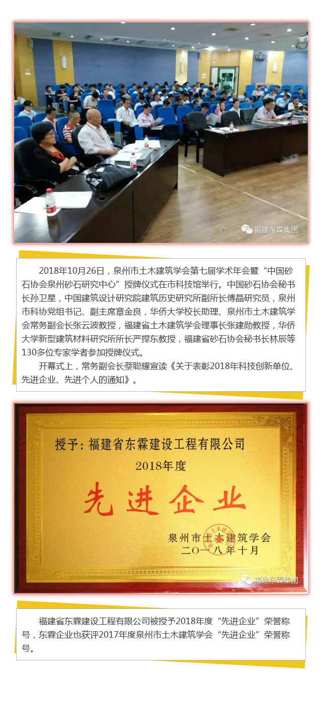 东霖企业再度获评泉州市土木建筑学会先进企业