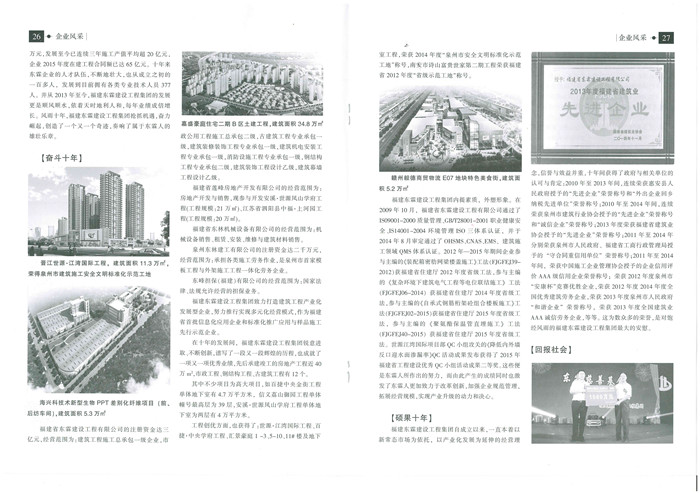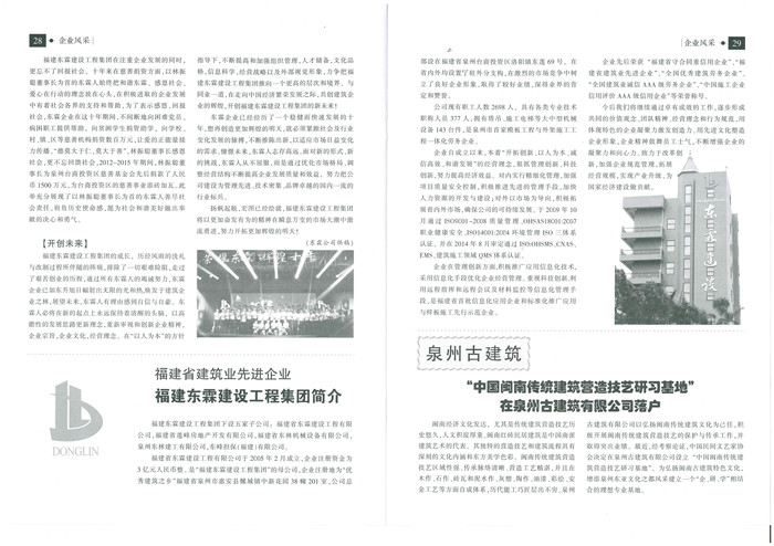 东霖企业十周年庆典活动荣登泉州建筑业期刊