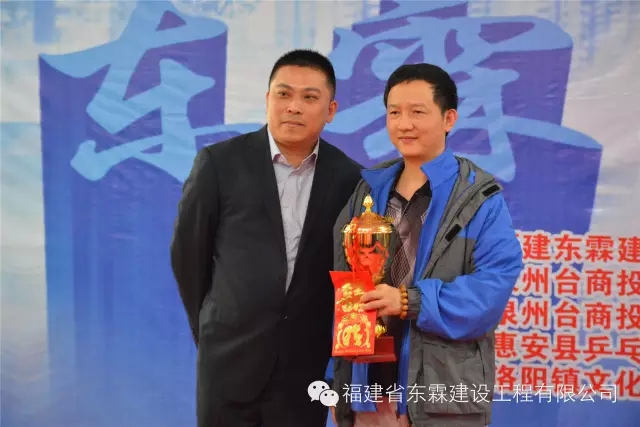 其中东霖代表队以优越的成绩获得第一名。 林董事长携东霖企业员工观赛 第三名:洛江代表队 第二名:永春代表队 第一名:东霖代表队