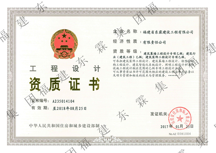 福建省东霖建设工程有限公司资质5