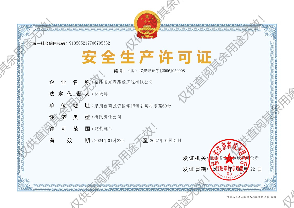 福建省东霖建设工程有限公司生产许可证